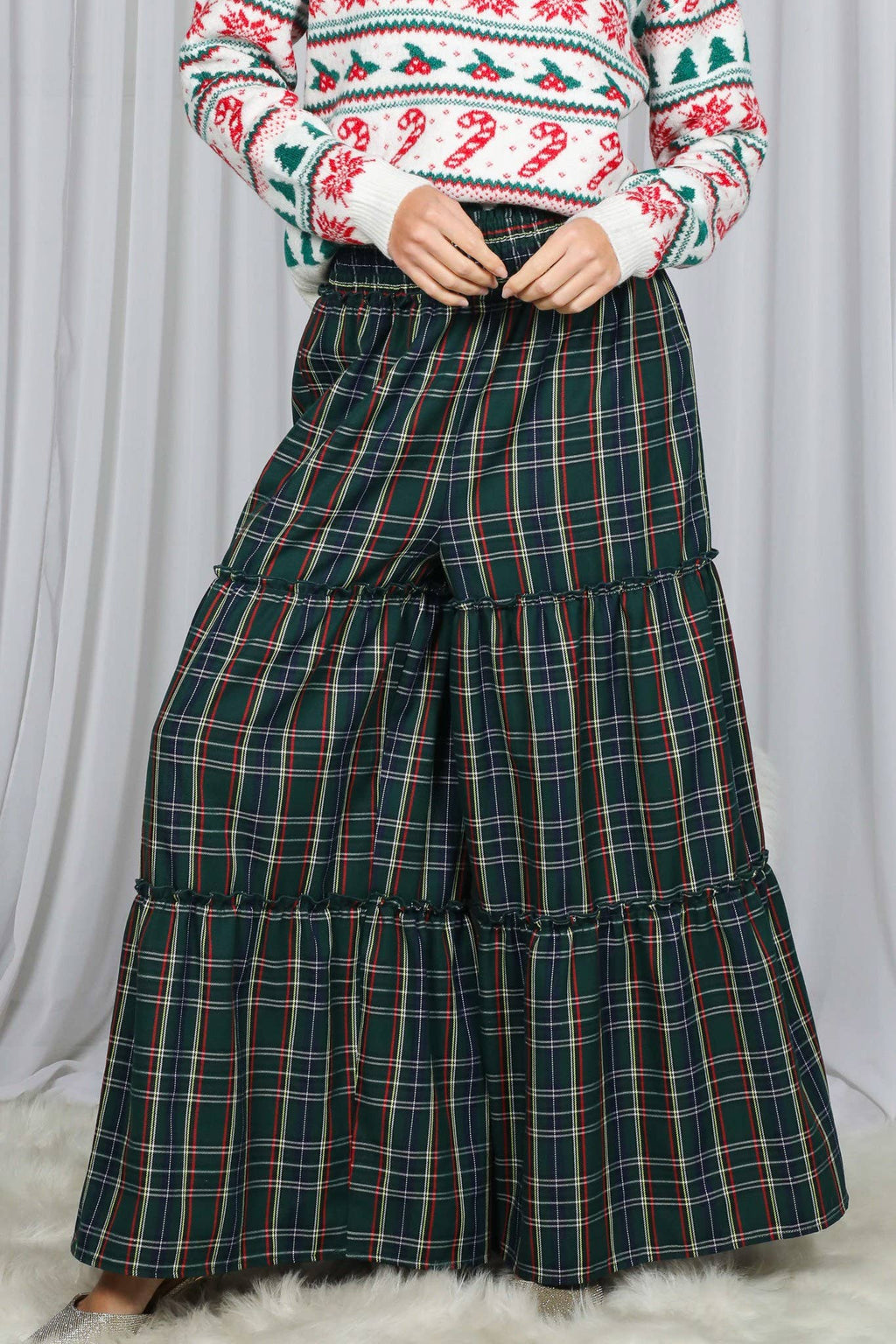 Maxi Tiered Wide Leg Palazzo Plaid Pants VP73052A