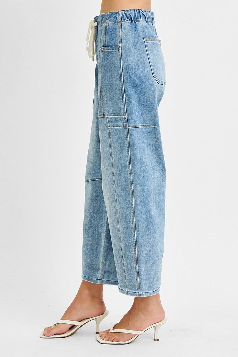 Risen High Rise Crop Mild Barrel Jeans PGA21024