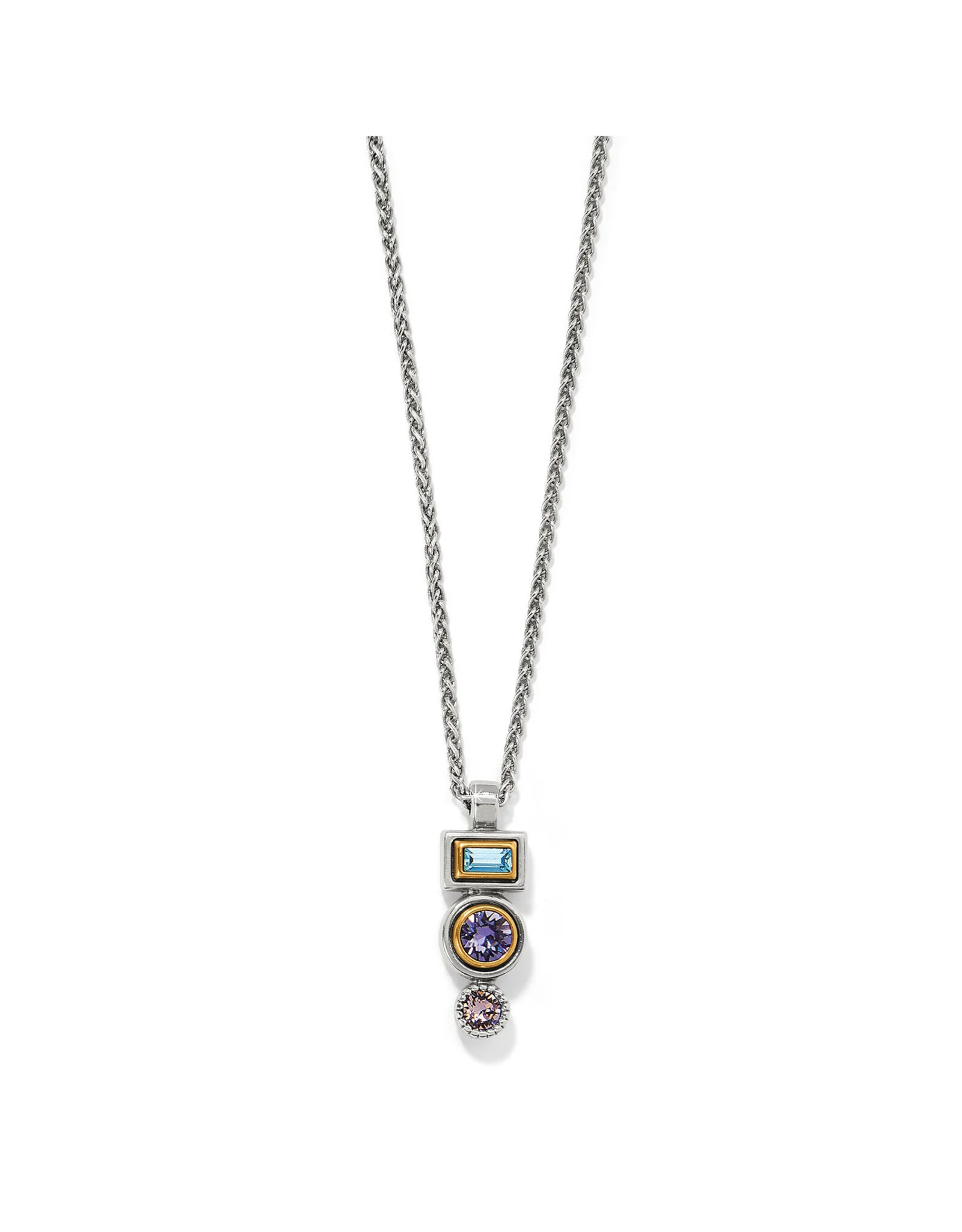 Sculpting and the addition of gold polished accents gives this Halo Drop Necklace an artisan feel. The crystal colors of purples and blues tie back to the collection’s inspiration – planets and stars in the night sky.