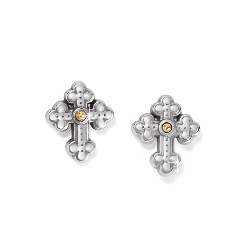 Our designers have created mini-post earrings to match our jewelry collections. Featuring the iconic cross, in a silver-and-gold finish, these two-tone posts will brighten up any wardrobe.