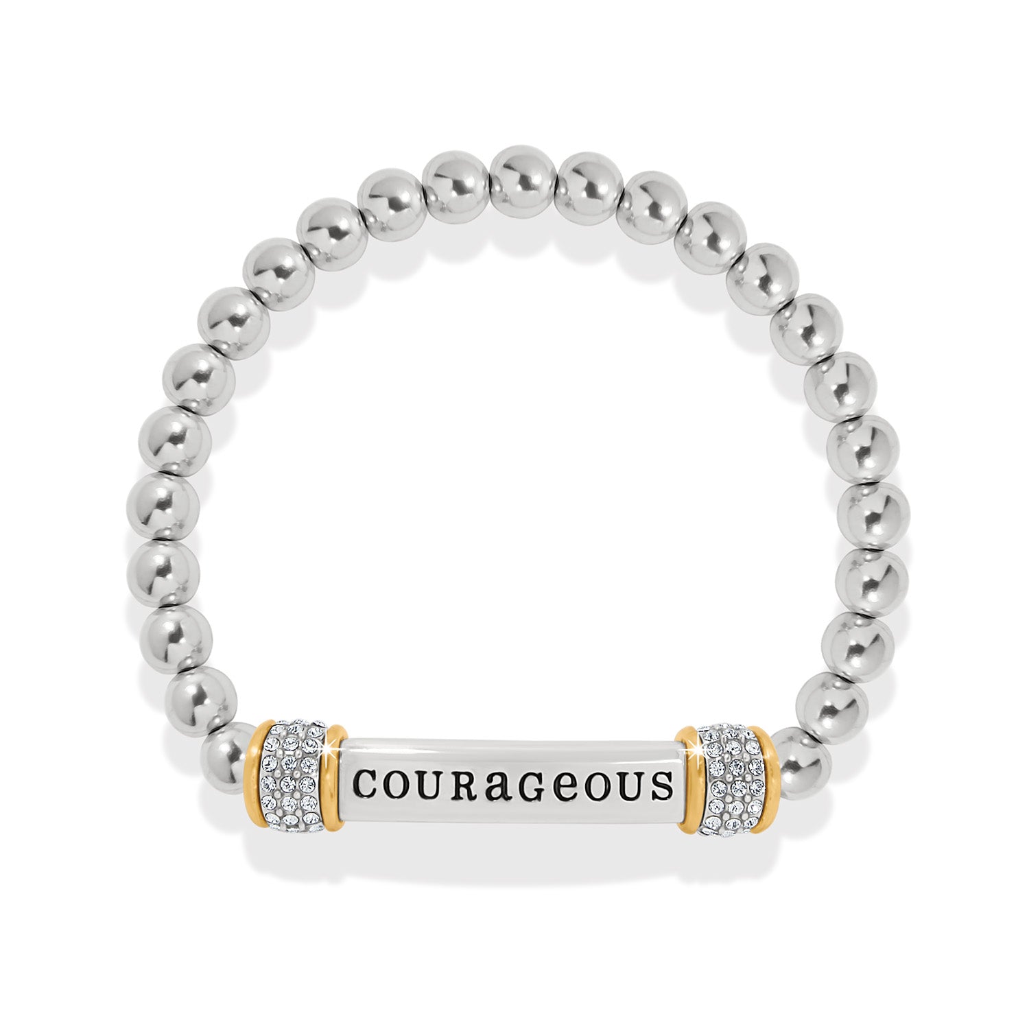 This delicately styled, comfortable and versatile two-tone stretch bracelet sends an inspiring message of courage to the world every day.