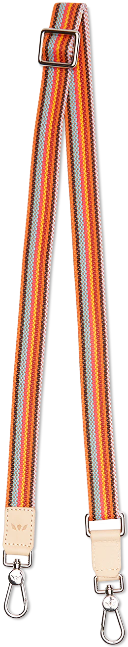 Create your own unique look with our Sunrise adjustable Crossbody Strap. This woven crossbody strap is trimmed in natural, untreated leather and accented with our colorful friendship bracelet embroidery. This is the perfect customized addition to any of our convertible bags: the Downtown Crossbody, Hobo, Sling, or Wedge.