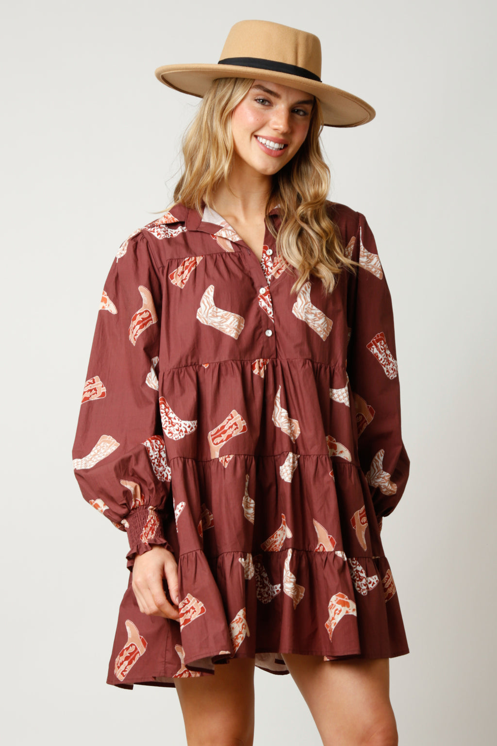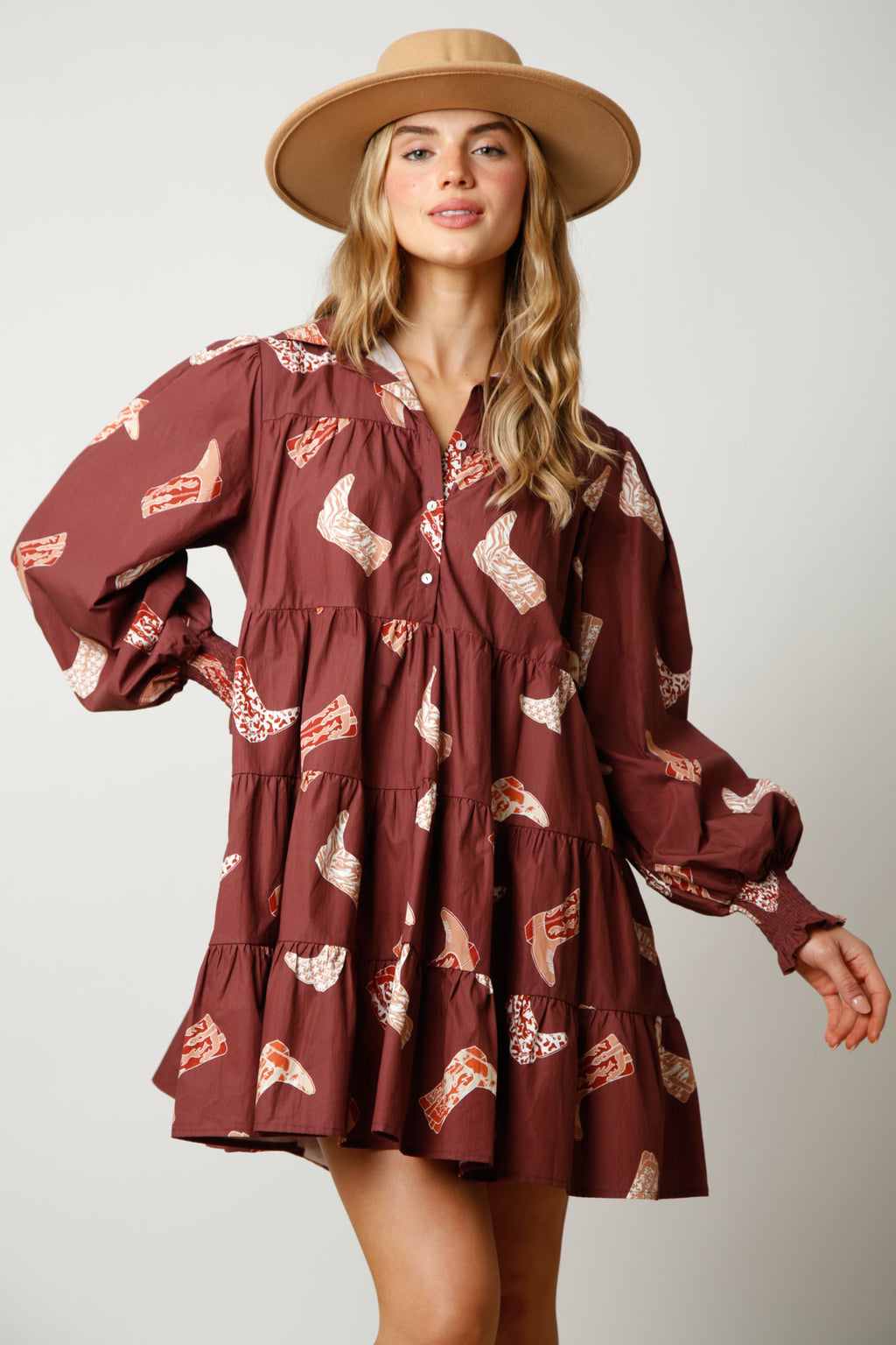 Ecru Botanical 3/4 Puff Sleeve Mini Dress