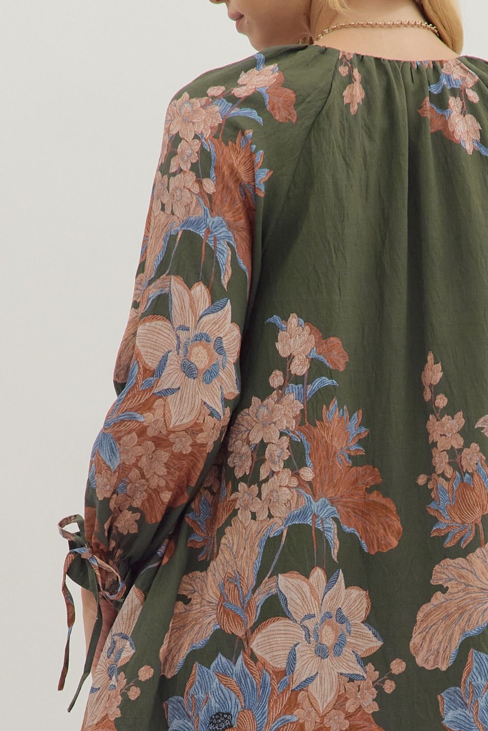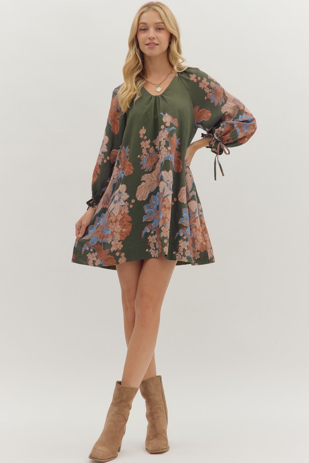 Olive Floral VNeck Dress