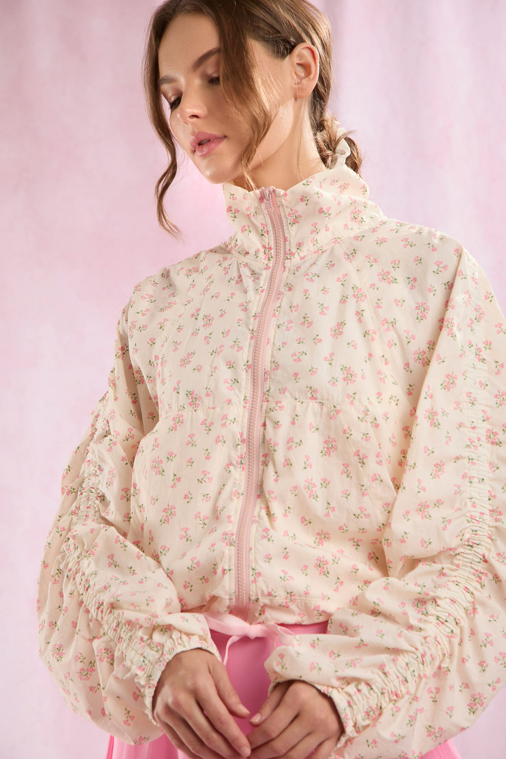 Pink Bow Print Button Jacket
