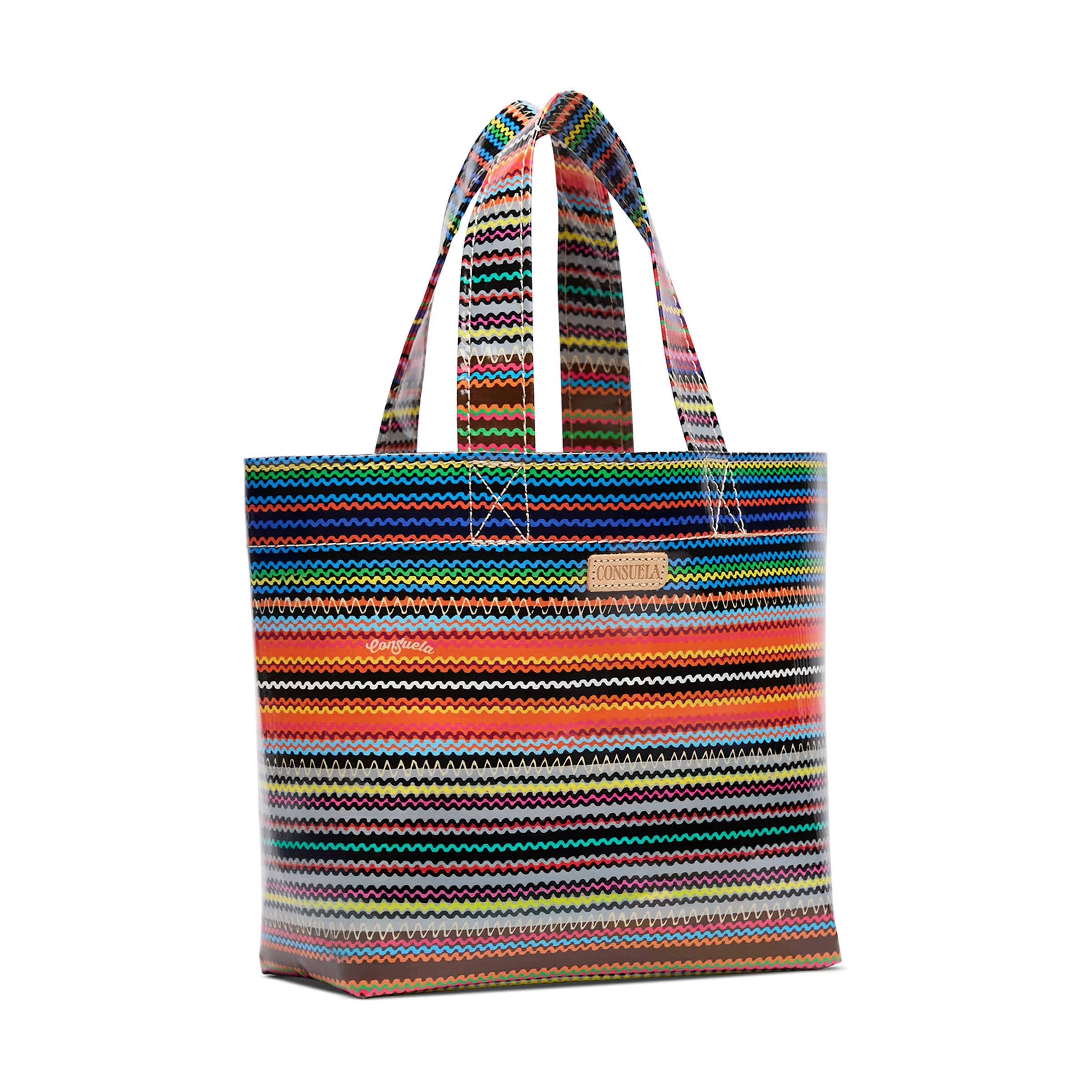 The Mini Bag was made for the little moments- carrying keys and a snack for a walk on the beach, lunch and a cold brew to the office, or for waiting patiently in the car, folded neatly under your seat. This bag made of easy-to-clean ConsuelaCloth™ is the smallest of our colorful utility totes.
