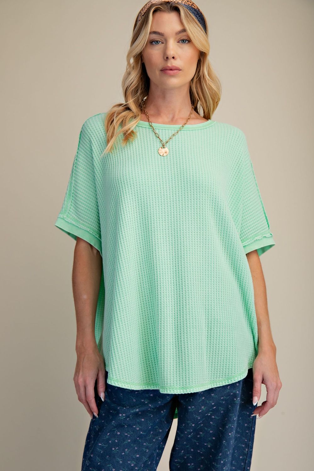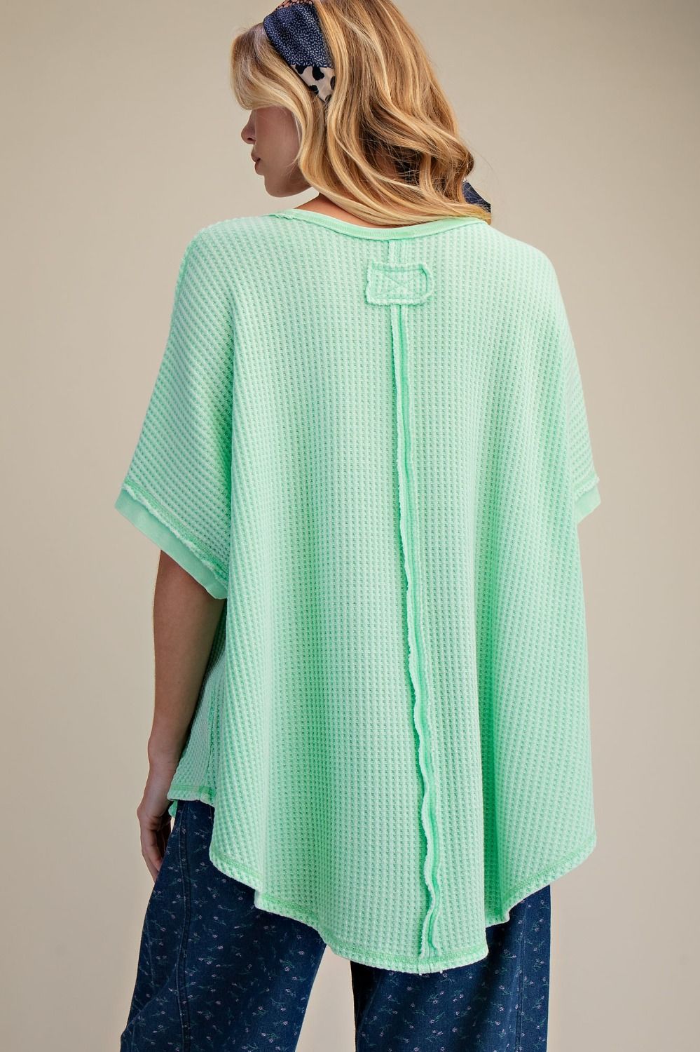 Boho Melon Mineral Washed Thermal Knit Oversized Top