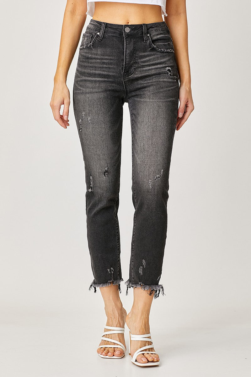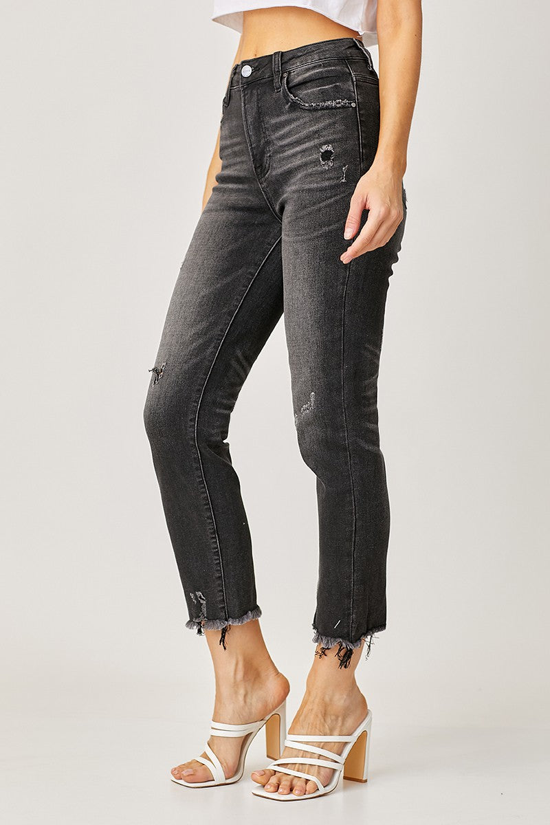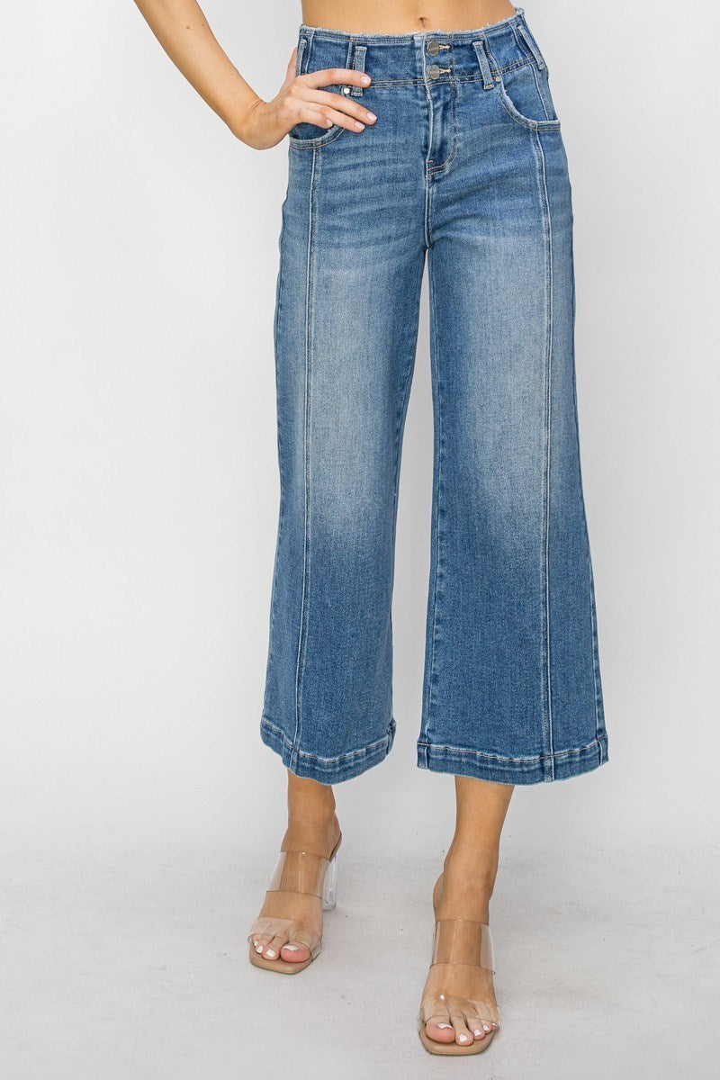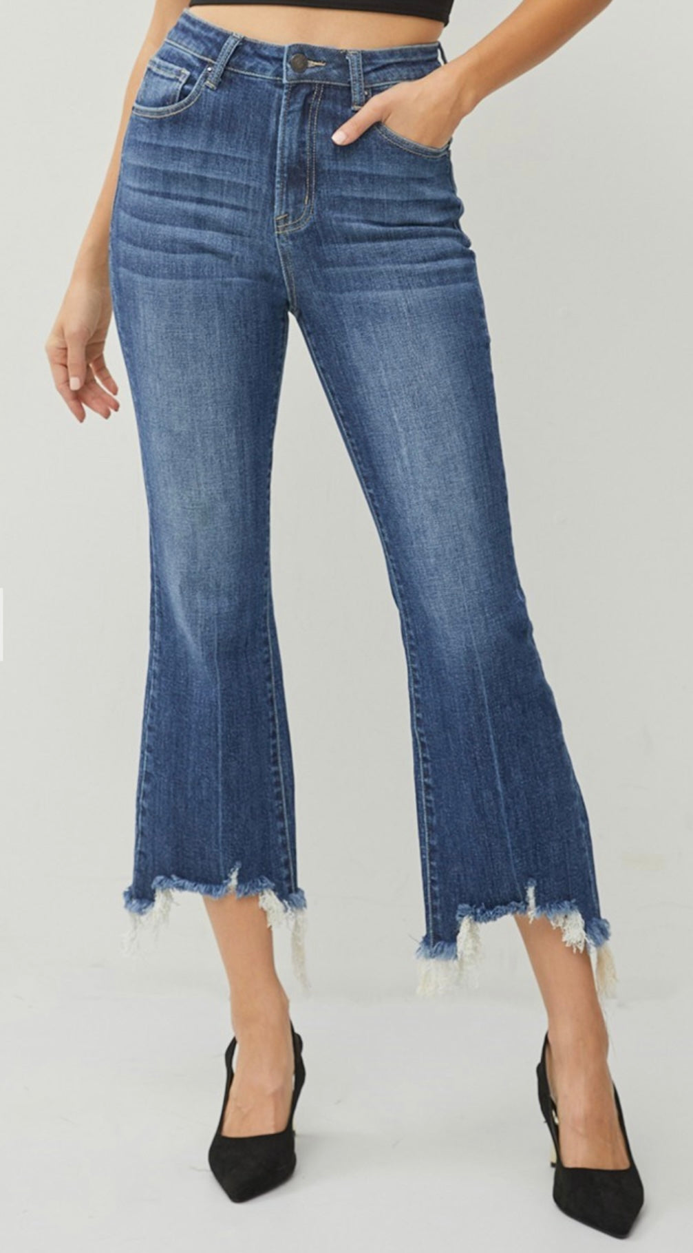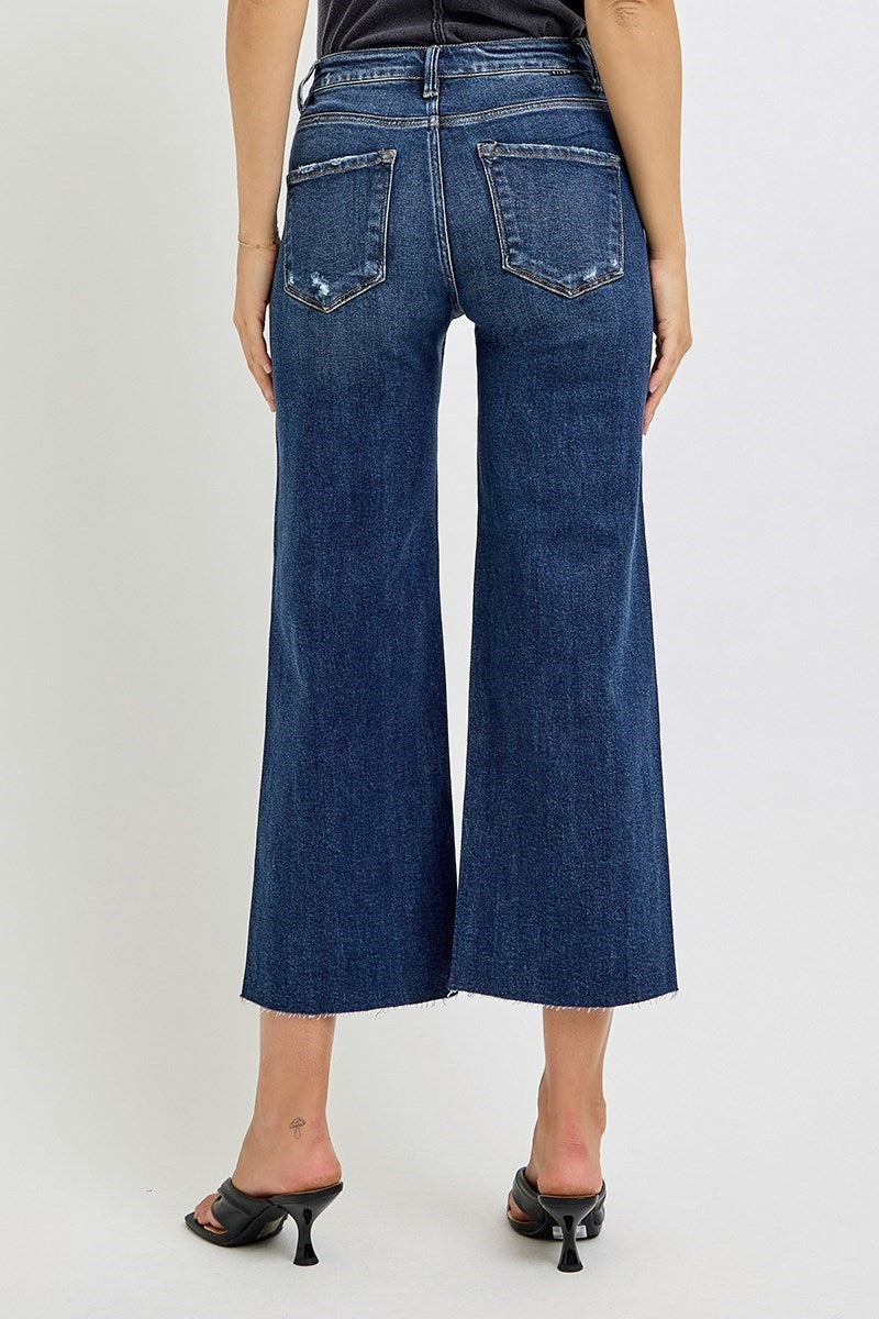 Risen High Rise Ankle Flare Patch Pocket Jeans RDP5662CH Dark