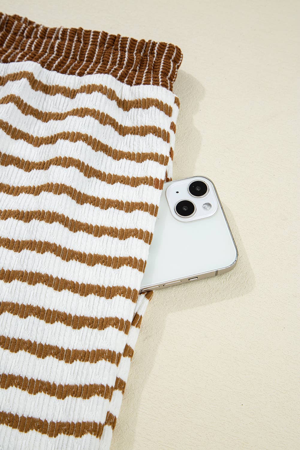 Stripe Collared Pullover Top and Drawstring Pant Set