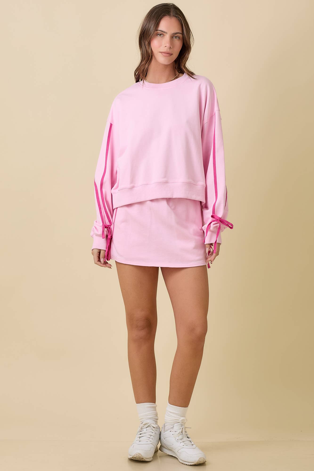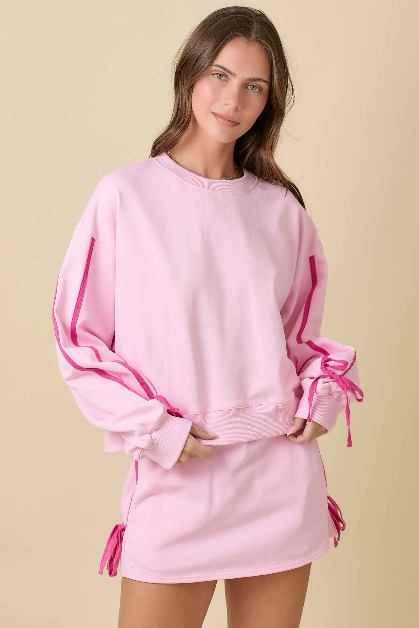 Crewneck With Contrast Twill Tape On Sleeve With Bow Tie Strap Detail