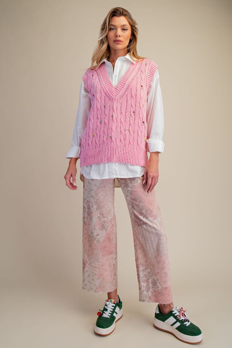 Pink Floral Embo Detailing Sweater Vest