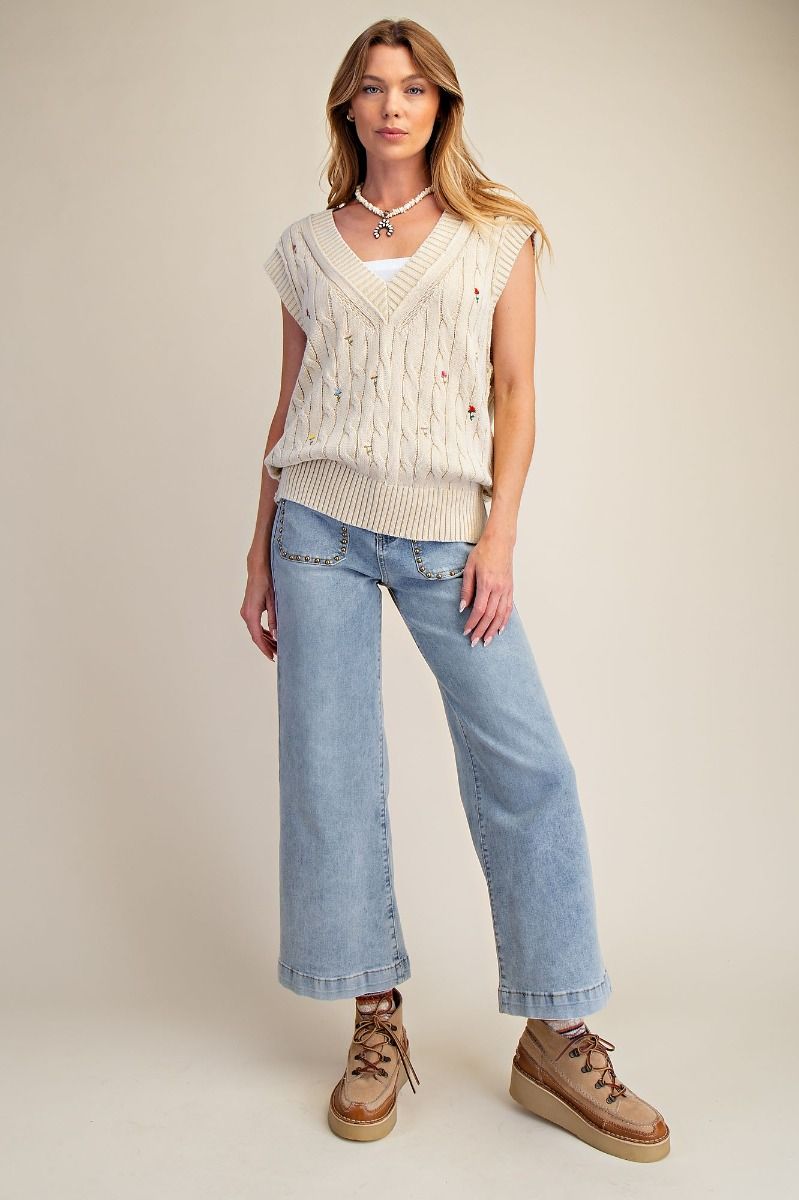 Sand Floral Embo Detailing Sweater Vest