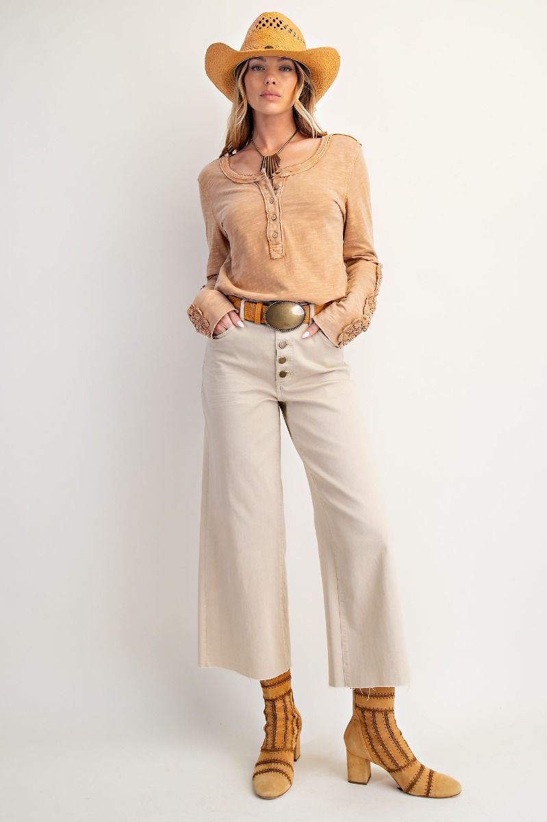 Camel Crochet Lace Cotton Slub Top