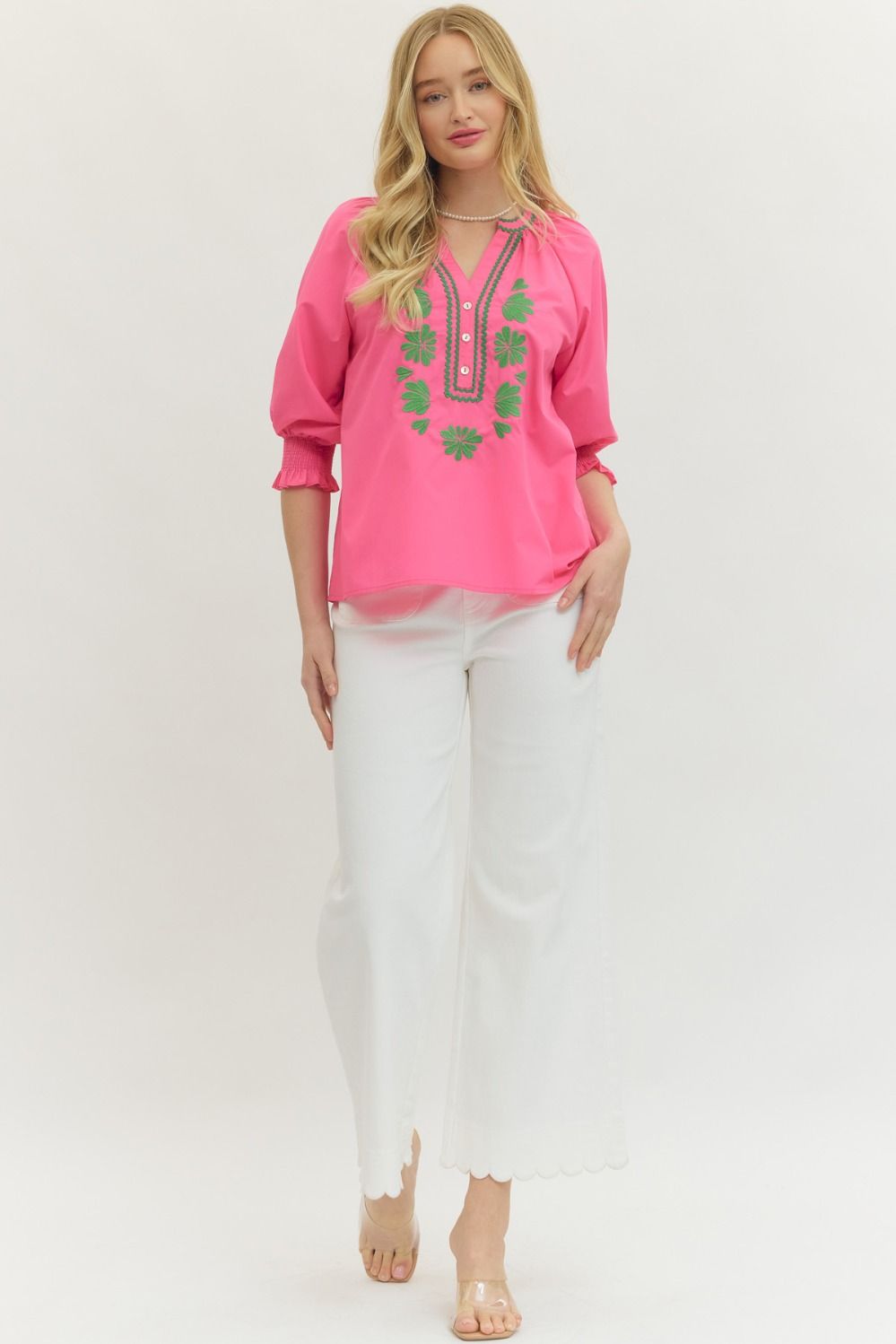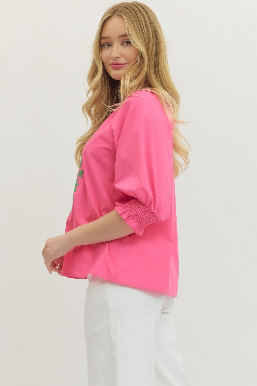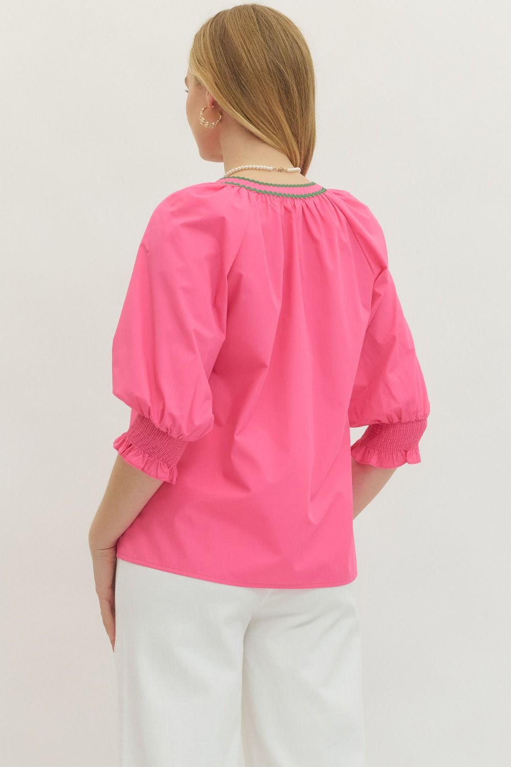 Hot Pink Split Neck Top
