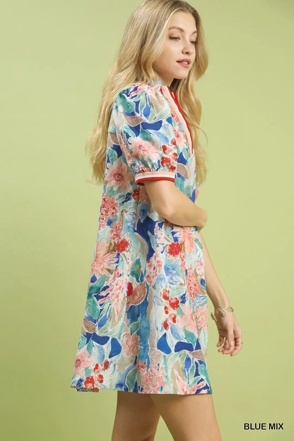 Blue Mix Jacquard Bloomscape Print Mini Dress