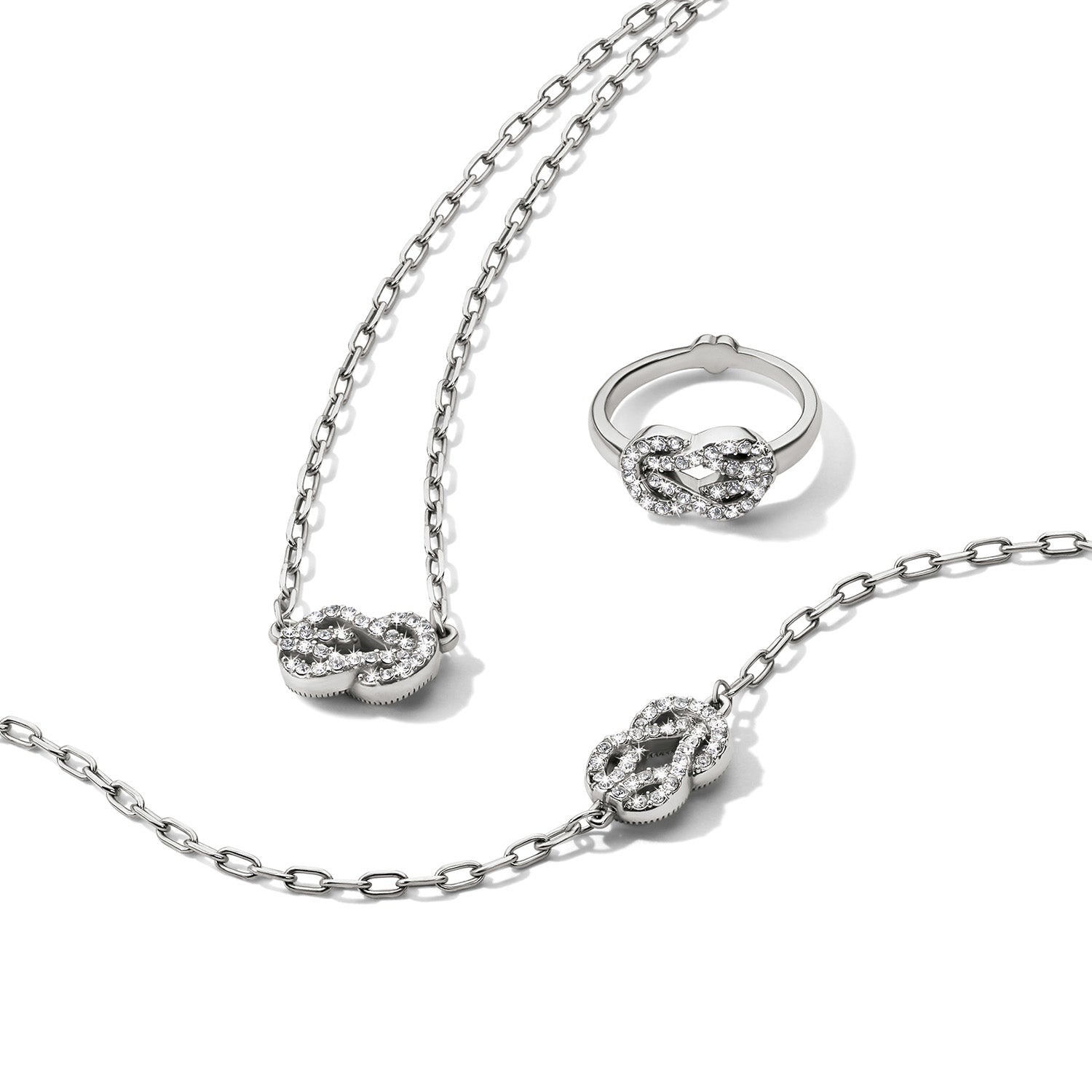Drawing inspiration from the timeless Hercules knot, which is a symbol of strength and unity, this elegant ting features a beautiful interplay of pavé detailing that artfully defines the iconic knot design. Exquisite craftsmanship and delicate, intricate construction gives it the look of fine jewelry.