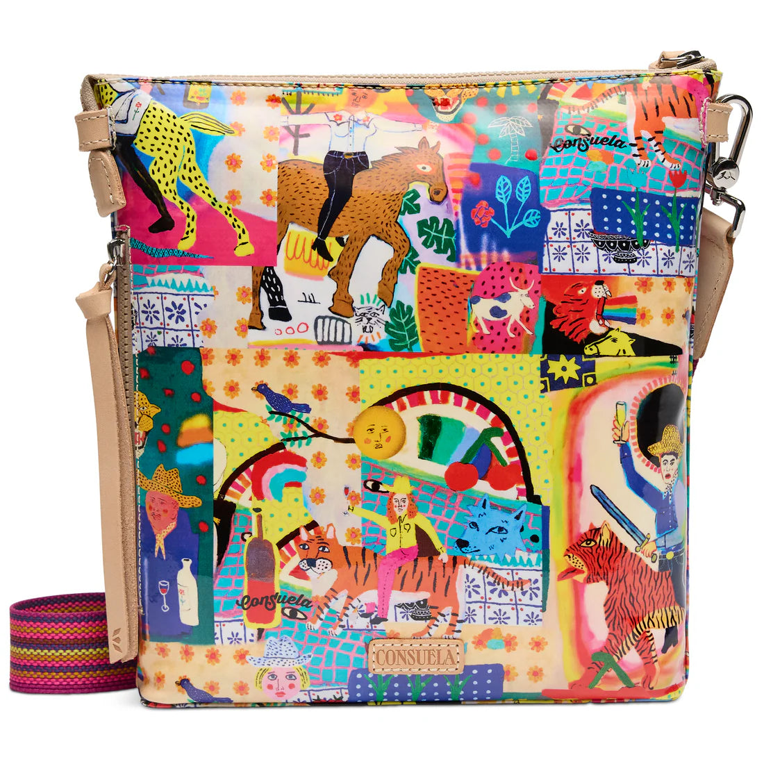 Our new, vertical crossbody has an extra front slip picket and a side zip pocket to streamline your busy life in style. Zip it up and go!