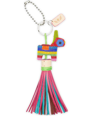 - Hand-beaded piñata donkey with multicolor leather tassel