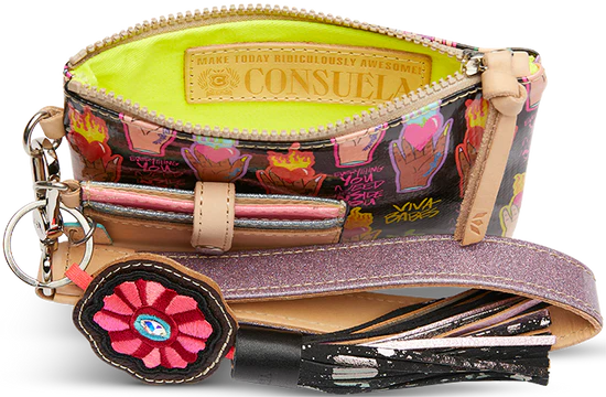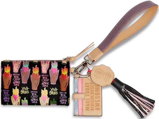 The Combi, a combination of on-the-go accessories, is a new way to carry your keys, cards, and the small stuff at all times. This colorful wristlet wallet includes a pocket pouch, secure card slot wallet and fits comfortably around your wrist- ready for your next journey.