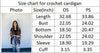 Hand crochet sleeves with a knit cardi body. Has front pockets.