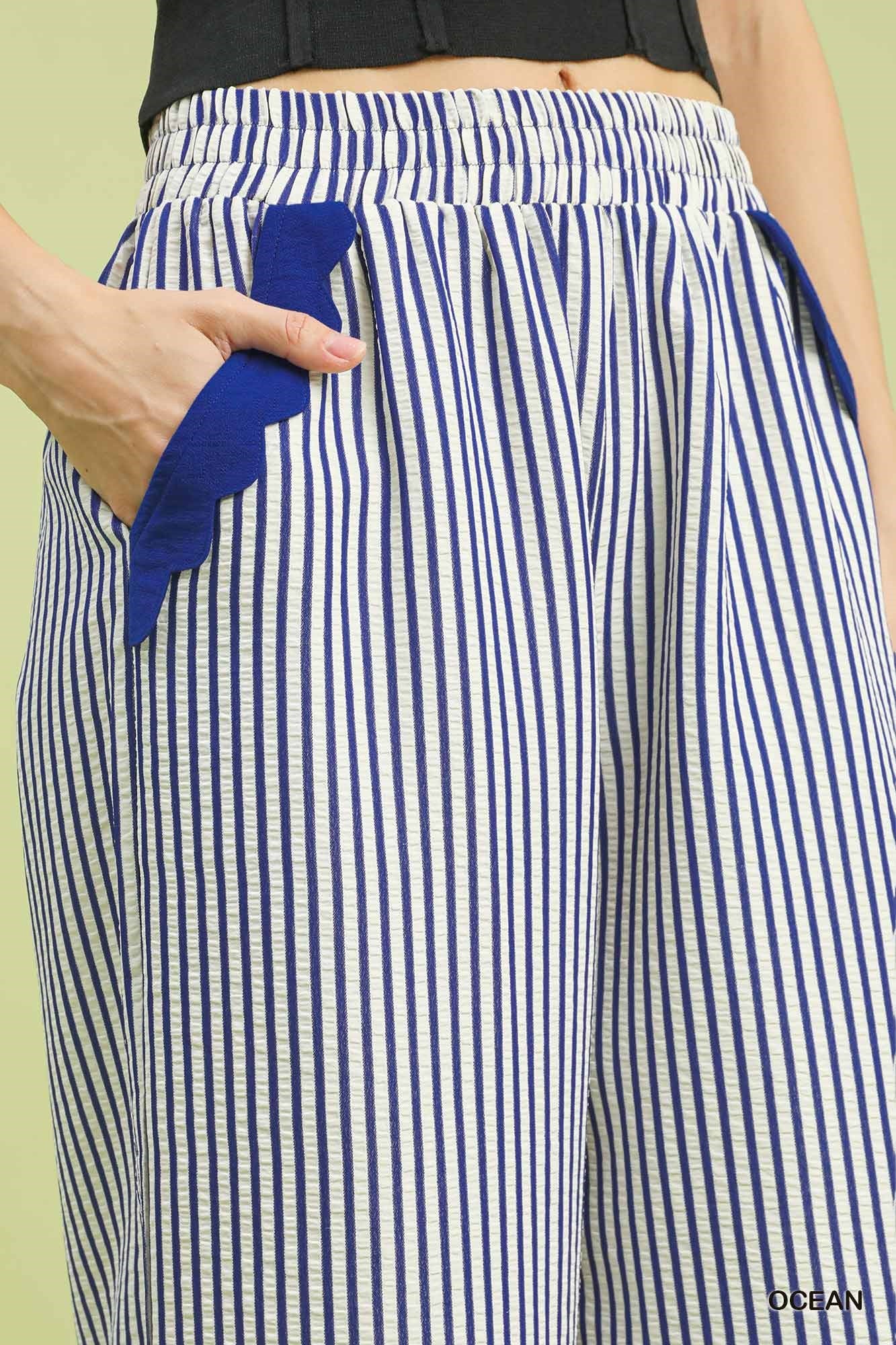 Ocean Stripe Scallop Hem Wide Leg Pants