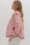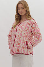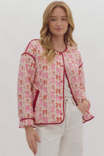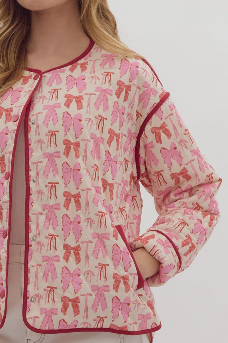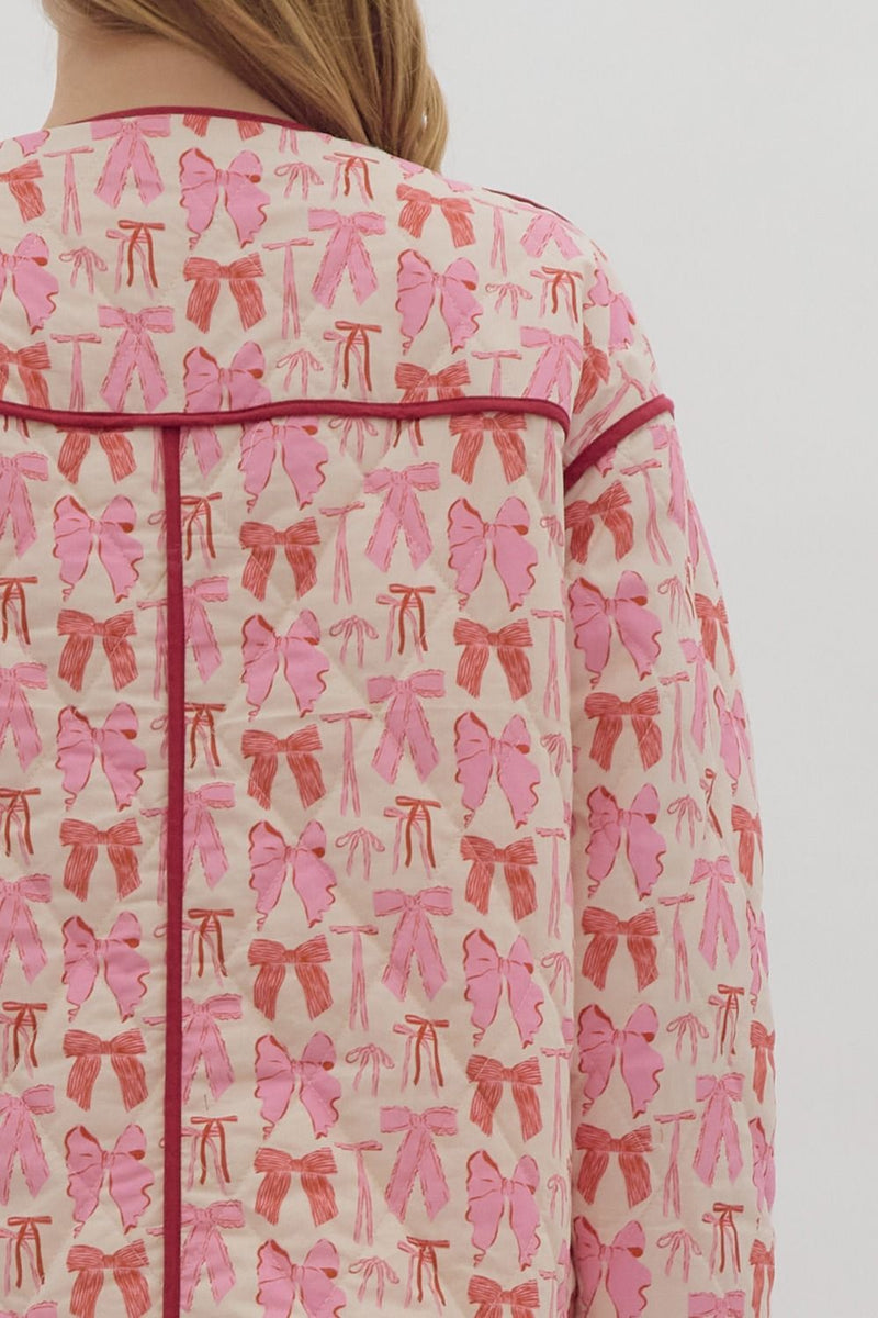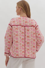 Pink Bow Print Button Jacket