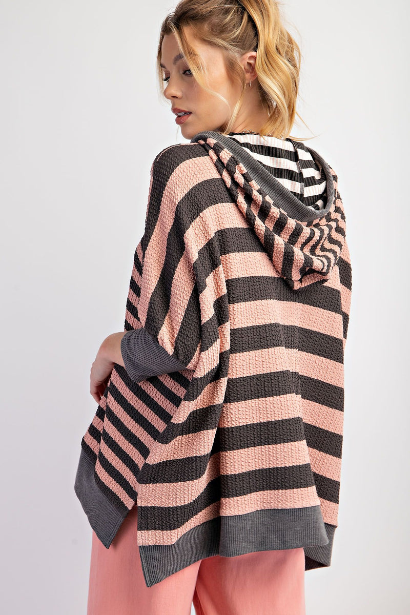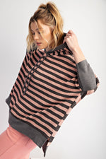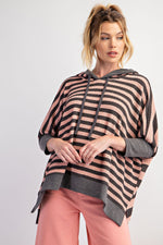STRIPE MIX OVERSIZED PULLOVER HOODIE