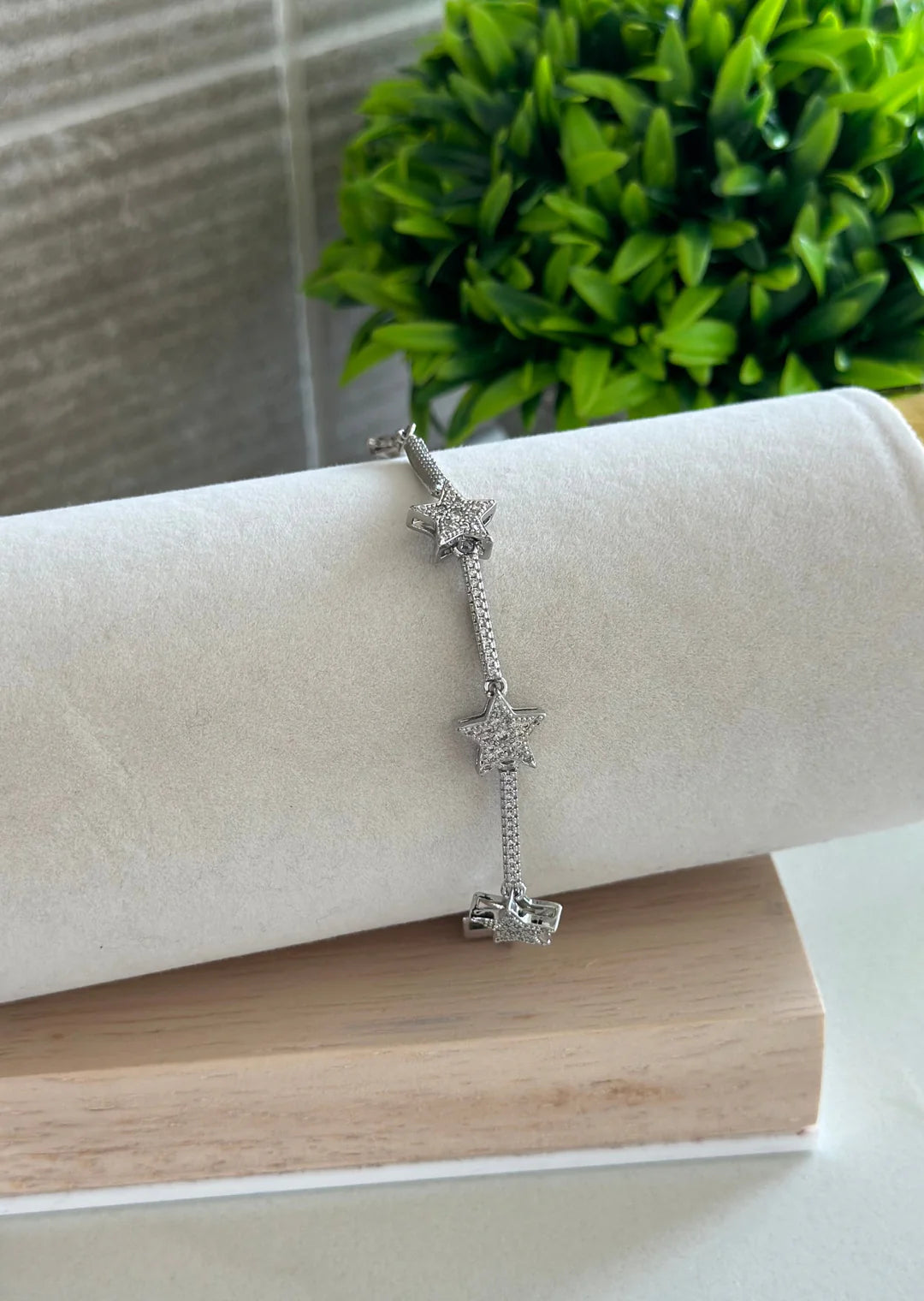 Crafted with attention to detail, this bracelet features multiple stars delicately arranged on a silver band, creating a dazzling celestial effect.